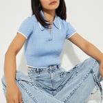 URB_N Women Braided Knit Johnny Collar Crop T-shirt