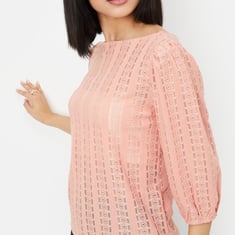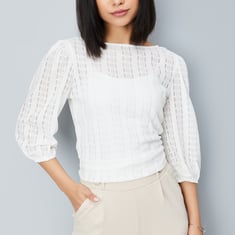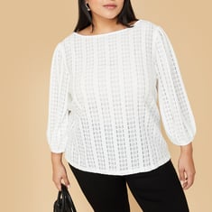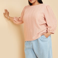 This knit top with floral patterns perfectly combines comfort and style. It features a round neck and 3/4th puffed sleeves and a flattering fit that's versatile enough for casual or layered looks.