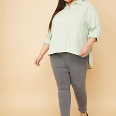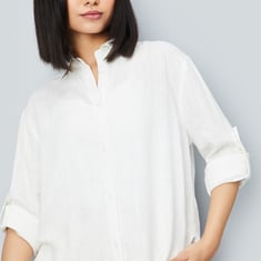 Your go-to piece for laid-back style, this shirt showcases a textured design. The oversized fit offers a relaxed, effortless look. This shirt features a spread collar, full sleeves with roll tabs, and a high-low hem. Model Size :