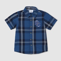 Smarten his outfit with this shirt updated with a checked pattern. It is tailored with a spread collar, short sleeves and a curved hem.