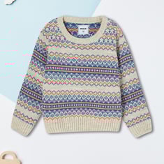 This sweater will keep your kids warm and cosy while they play outside in the winter. It has a charming Fair Isle pattern, full sleeves, a comfy crew neck, and a ribbed hem for a snug fit.