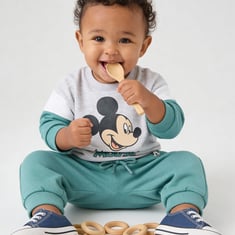 Upgrade your casual wardrobe with this stylish Mickey Mouse set featuring a t-shirt and solid joggers. The t-shirt comes with a classic crew neck and full sleeves, while the joggers are designed with a drawstring closure and functional pockets for everyday comfort and utility.