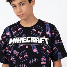 This Minecraft oversized print T-shirt is a fun and casual piece for everyday wear. Featuring a crew neck and half sleeves, it offers a classic silhouette with comfortable styling.