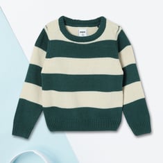 Let your kid stay cosy this winter in this vibrant striped sweater. With its classic crew neck, ribbed hem, and full sleeves, it seamlessly blends warmth and style. Perfect for keeping warm while adding a pop of colour to their cold-weather wardrobe.