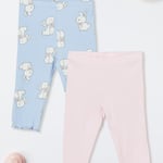 This pack of 2 ribbed leggings offers both comfort and style. Designed with an elasticated waist and wavy hems, one pair features a playful print while the other comes in a versatile solid colour—perfect for mixing and matching with everyday tops.