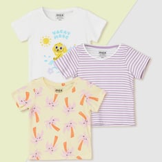 This versatile pack includes two printed t-shirts and one striped t-shirt, all designed with a classic round neck and half sleeves for a comfortable fit. Perfect for everyday wear, these tees blend playful prints with timeless stripes, making them a must-have for effortless style.