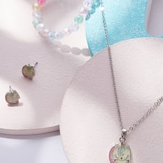 Amp up her cuteness factor with this jewellery combo set. Made of metal with a charming cat theme, this set includes a pendant necklace with a lobster clasp, a pair of stud earrings with post and back closures, and a beaded bracelet to complete the look. She'll look adorably stylish with this delightful jewellery set.