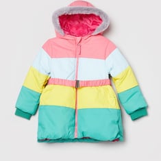 Designed with a colourblock pattern, this jacket is complemented with a quilt, zip-closure and insert pockets. An ideal pick for a monsoon wardrobe, this one shall keep your little one cosy all day long.