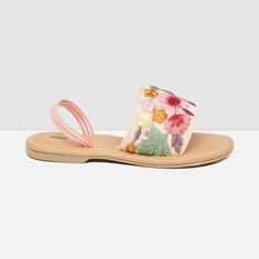 Girls Floral Embroidered Open Front Sandals