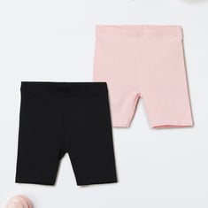 Girls Solid Knit Shorts - Pack of 2