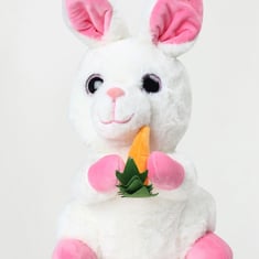 Soft and plush, this bunny toy holds a carrot in hand. Easy to carry and cuddle, it makes the perfect gift for your little one.