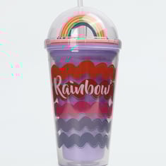 Add an element of fun to your little one’s day with this tumbler. It has a tumbler with a cap and straw. The rainbow-themed design and confetti accents provide added style. This tumbler is made of BPA-free material.