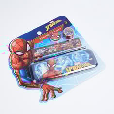 Brighten up your study time with this stationery set featuring a spiderman print pencil box. The set includes 1 pencil, 1 eraser, 1 sharpener, and 1 scale, all designed with vibrant, fun details.