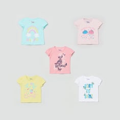 MAX Girls Printed Round Neck T-shirts Combo - Pack of 5