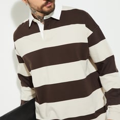 Men Striped Collared Sweatshirt