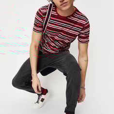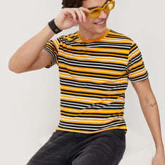 Let your comfort and style stand out with this striped t-shirt. It features a crew neckline and half sleeves that is a perfect addition to your casual wardrobe. Make a complete outfit by teaming this t-shirt with a pair of jeans and lace-up shoes.