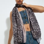 This scarf is adorned with a striking animal print, presenting a bold accessory for everyday wear. Its flowy silhouette makes it a versatile piece to accessorise various outfits, effortlessly elevating your look with an edgy vibe.