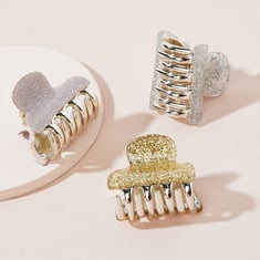 Ensure your hair stays neatly away from your face with this set of clutchers. Each clutch is designed with glitter and spring hardware for effortless closure, providing both practicality and convenience. Add a touch of sparkle to your look while keeping your hair in place with these stylish and functional accessories.