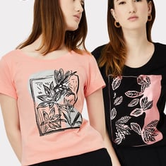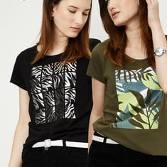 Show off your unique personality in this T-shirt. With its classic round neckline, short sleeves, and eye-catching graphic print on the front, it's the perfect piece to express your style.