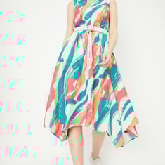 Women Printed Asymmetrical Hem Dress