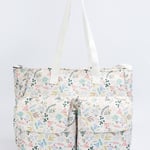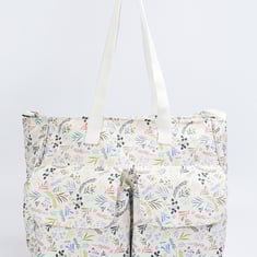 This printed diaper bag features twin handles and zip closure, front pockets for easy access, and comes with a convenient changing mat. Stylish and functional, it's designed to keep all your baby essentials organized while on the go.
