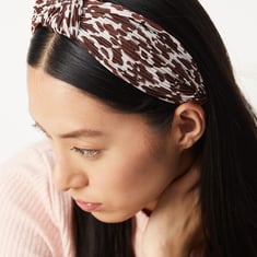 Add a hint of drama to your outfit with this hairband. It features a printed fabric overlay with pleats and a knot at the top for a chic look.