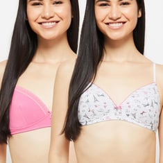 Defining comfort, these t-shirt bras are designed with a printed pattern, adjustable straps, and soft padded detailing. It comes with a back hook closure for added comfort.