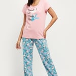 Women Printed Round Neck T-shirt with Elasticated Pyjamas