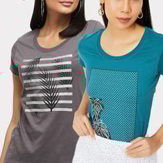 Refresh your casual collection with this pack of two printed T-shirts, designed for everyday comfort and style. Featuring a classic round neck and easy half sleeves, these tees bring versatile charm to your wardrobe