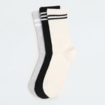 These striped crew-length socks offer a comfortable fit and are perfect for everyday wear. Available in a pack of 3, they provide both style and durability.