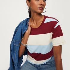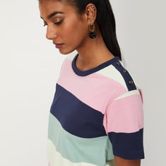 Women Striper Button-Detailed T-shirt