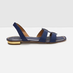 This pair of flat sandals come with a solid surface, open-toe construction, and adjustable elasticated straps for a comfortable fit.