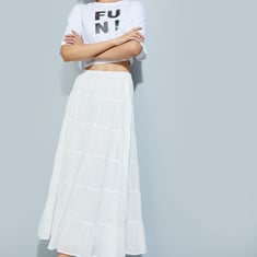 ALAYA F x URB_N Women Solid Tiered Long Skirt
