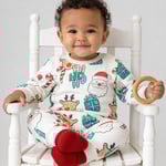This Santa Claus print joggers set brings festive charm and comfort together. The full-sleeve sweatshirt features a cheerful Santa Claus print, a crew neck, and ribbed hems for a snug fit. The matching joggers come with a drawstring waist for adjustability and convenient pockets for everyday ease.
