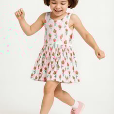 Step into effortless charm with this floral print dress, featuring a round neck, sleeveless design, and a button closure for added detail. Light and breezy, it’s perfect for warm-weather days or casual outings.