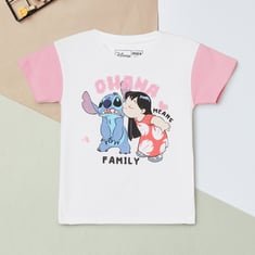 This Lilo & Stitch print T-shirt is full of playful charm, featuring a cheerful graphic, classic round neck, and comfy half sleeves. Perfect for little fans who love to show off their favourite characters.