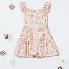 This printed dress is all about effortless style. With a smocked bodice, flared hem, and square neck, it's perfect for sunny days. Sleeveless for a breezy look, this dress offers both comfort and chic vibes in one.