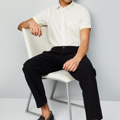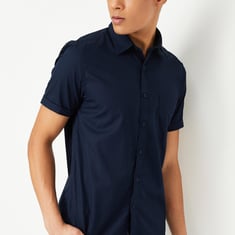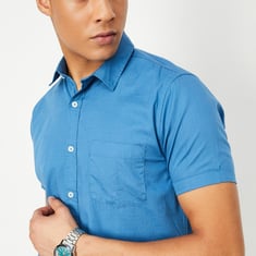 Let your comfort and style pop out with this solid casual shirt. It features a spread collar, half sleeves, a patch pocket, and a button placket that is a perfect addition to your casual wardrobe. This shirt looks best when teamed up with a pair of trousers and lace-up shoes.