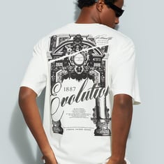 Upgrade your street style with this oversized T-shirt, designed with a classic crew neck and half sleeves. The standout graphic print on the back and a striking placement print at the front create a perfect blend of laid-back vibes and urban flair.