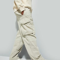 Practical meets stylish in this pair of parachute pants. It has a solid tone finish with 4 pockets and tie-ups at the hem. The cargo pockets offer additional functionality.