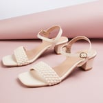 Women Braided Strap Block Heels