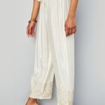 Indulge in bohemian charm with these embroidered palazzos featuring exquisite embroidery at the bottom, adding a whimsical and feminine touch to your ensemble. The drawstring closure ensures comfort, making these palazzos a versatile and stylish choice for any occasion.