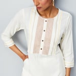 Create an effortless casual look with this straight kurta. It has a round neckline with an embroidered yoke, three-quarter sleeves and a pocket.