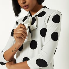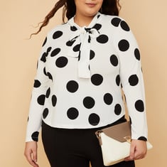 This polka dot blouse adds a touch of vintage charm to your wardrobe. It features a tie-up neckline and full sleeves, creating an effortlessly feminine and elegant silhouette. Model Size :