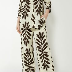 Bring a breezy vibe to your look with these printed palazzos. Adorned with bold leaf prints, they feature a drawstring waist for a comfortable fit. Side pockets add everyday practicality to the wide-leg silhouette.