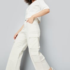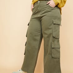 Women Solid Cargo Jeans
