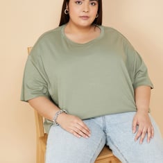 Women Solid Oversized Boxy T-shirt