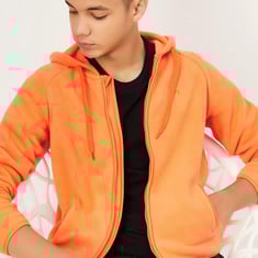 Stay snug and stylish with this lightweight jacket. It features a hooded neckline, zip closure, side pockets, and full sleeves for a comfortable fit. The fleece finish provides warmth.