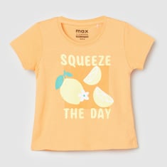 A perfect addition to her everyday rotation, this T-shirt is highlighted with a cute glitter print on the front. It is designed with a round neck and short sleeves.