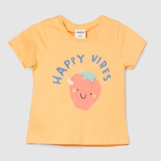 Add a splash of fun to your kid's casual wardrobe with this playful T-shirt. Featuring a vibrant graphic print, a classic round neck, and cool half sleeves, this tee is perfect for adventurous days and endless play.